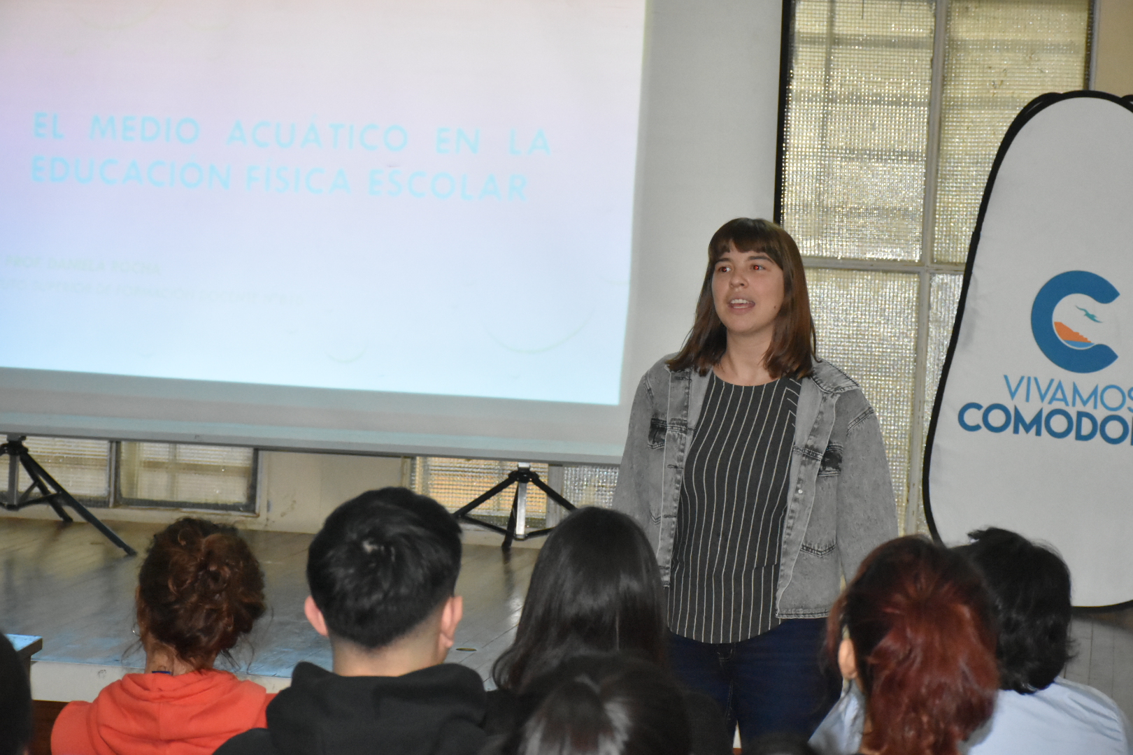 “Es abierto a la comunidad. Hay muchos estudiantes de educación física pero también sabemos que hay profes de Caleta Olivia, Sarmiento, de acá de Comodoro, profes que se desempeñan en piletas de toda la región”, comentó la Licenciada Daniela Rocha, profesora de Educación Física en el Instituto Superior, con especialización en Educación Acuática.