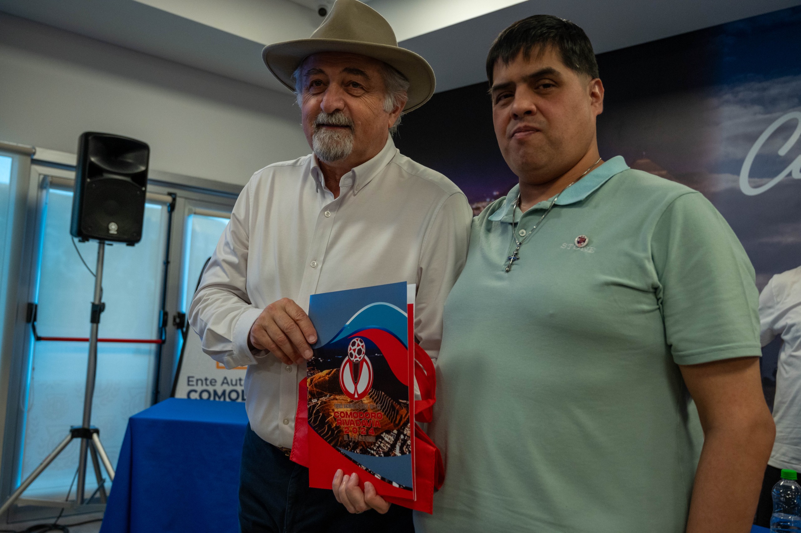 Durante el acto se rubricó el acuerdo de colaboración y disposición de recursos para el desarrollo del torneo y hubo entrega de presentes al intendente y a las autoridades de Comodoro Deportes.
