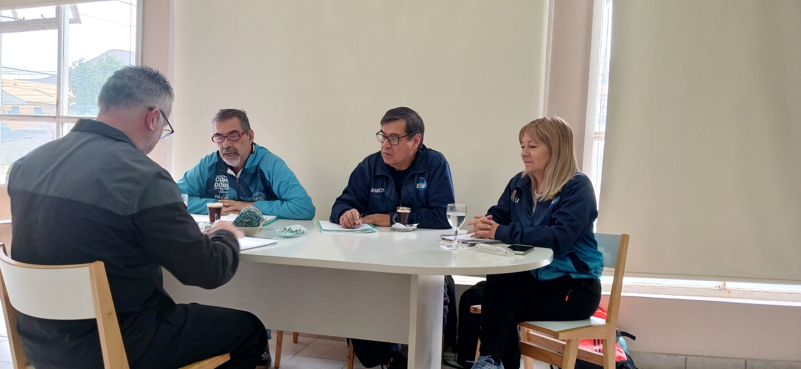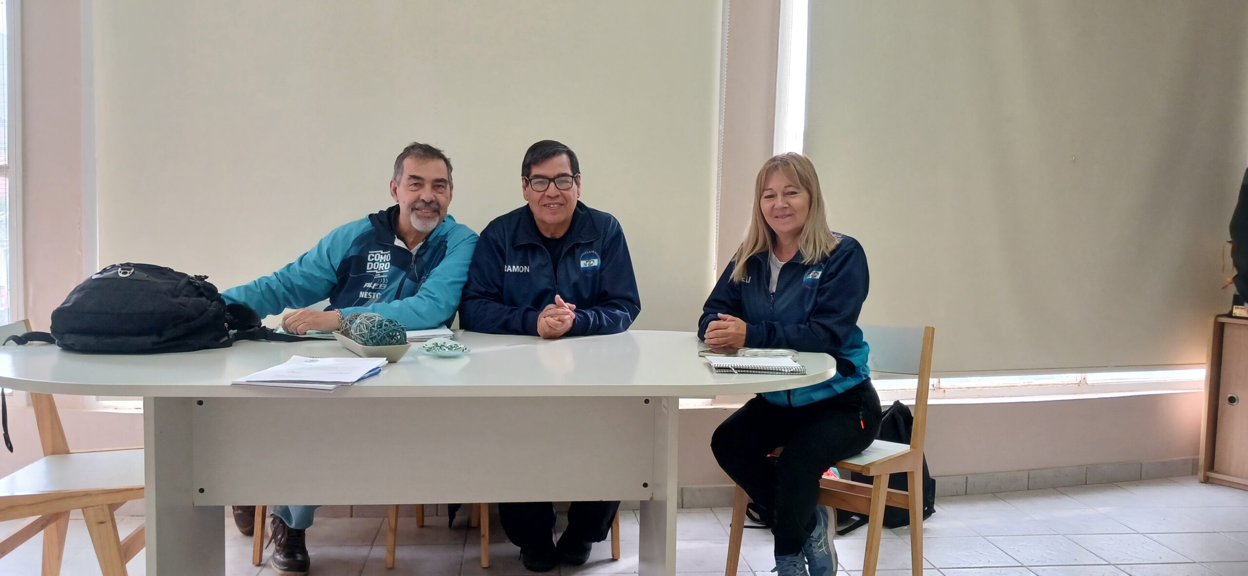 Néstor Sánchez responsable deportivo del Club Malvinas de Newcom junto a Ramón Barrionuevo y Elizabeth Ingram estuvieron reunidos con el presidente de Comodoro Deportes, profesor Hernán Martínez, donde consiguieron apoyo para diversos viajes, espacios físicos, y confirmaron el Campeonato Argentino que se realizará en Comodoro Rivadavia.