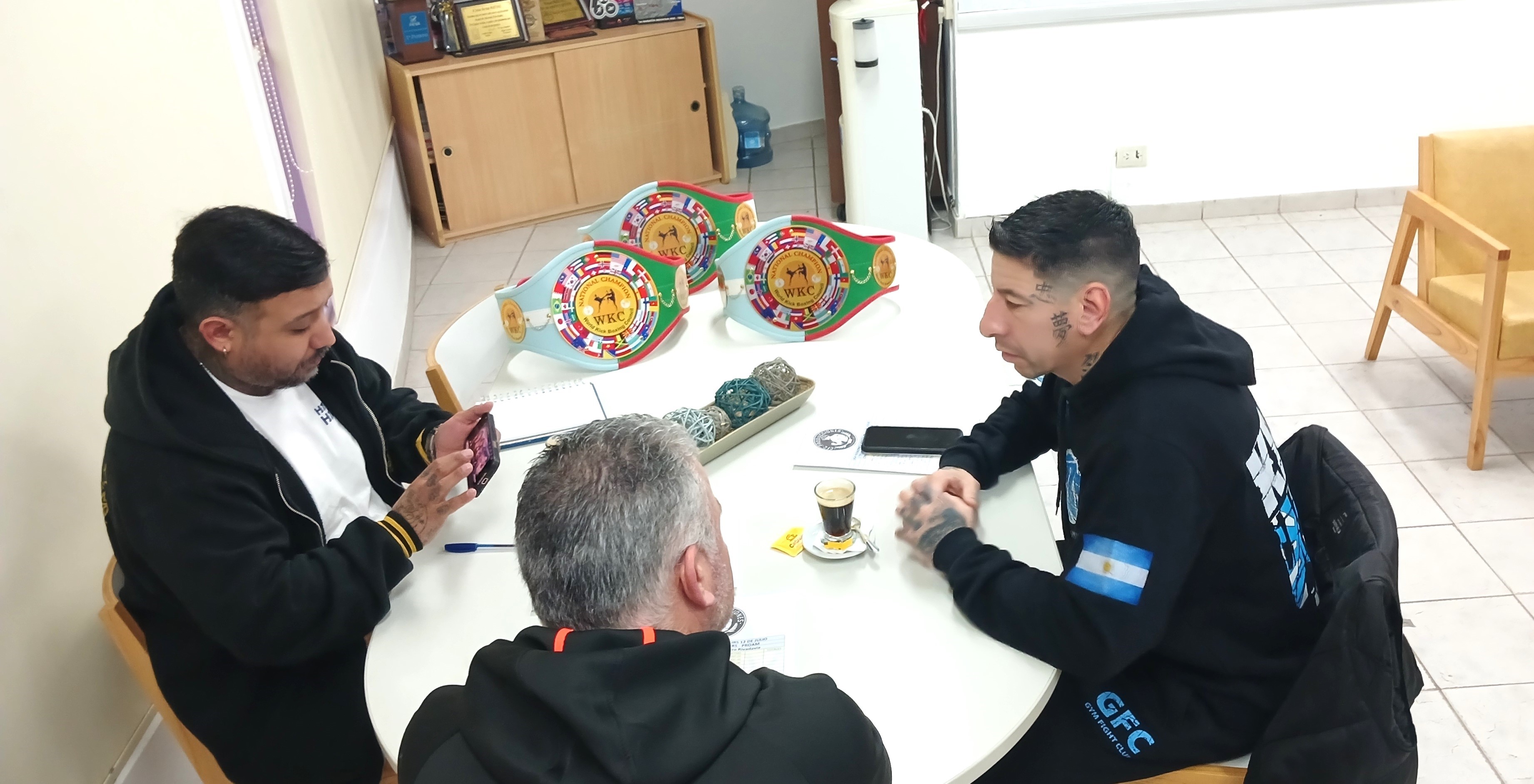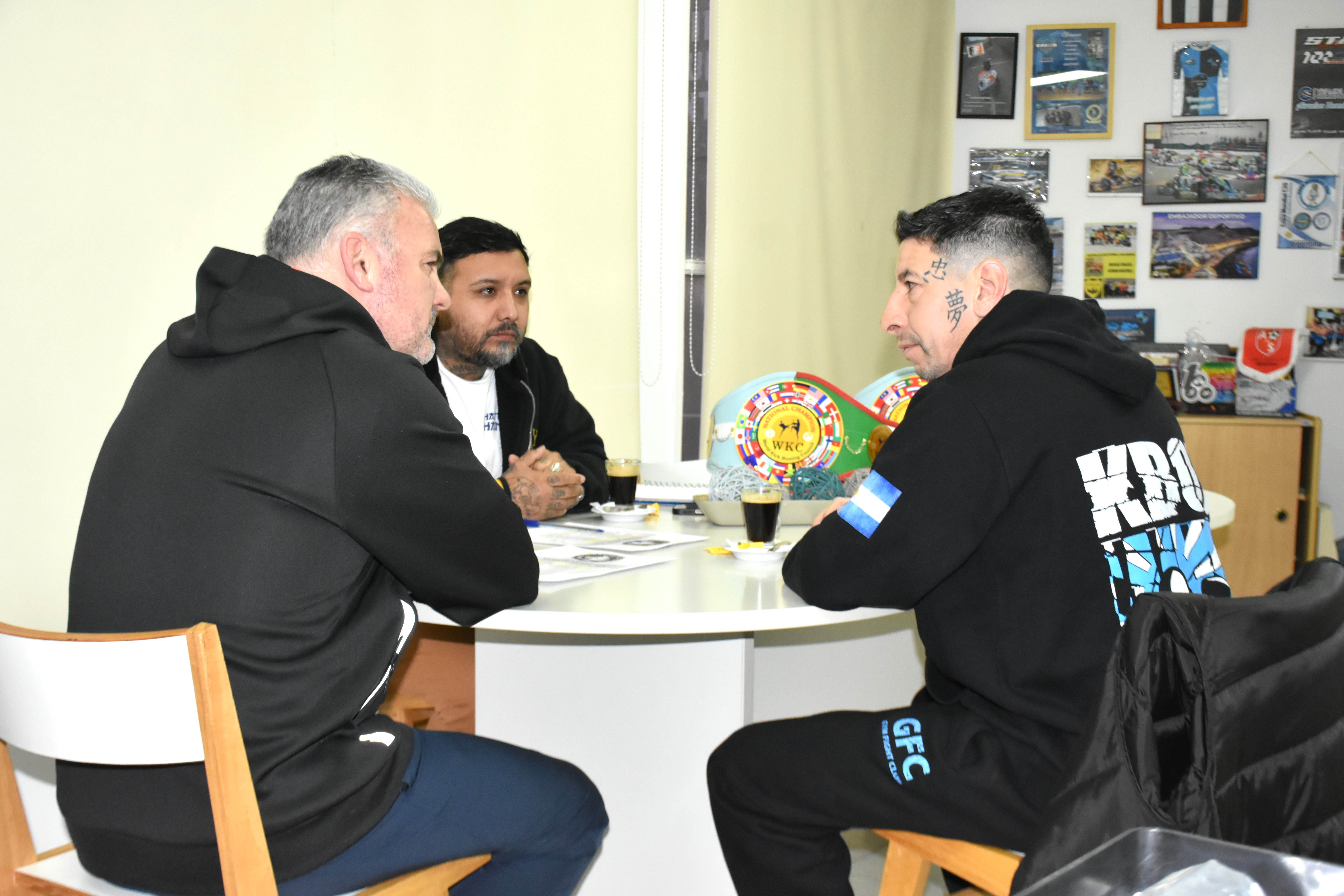 Tras la reunión, los integrantes del Gym Fight Club compartieron algunas impresiones. Darío Achaval, a cargo de la programación de las peleas como director deportivo, afirmó: “La verdad que estamos recontra contentos porque se viene una nueva fecha de la Liga Patagónica Amateur y Formativa. Sería la tercera en la región, pero la primera aquí en Comodoro. La primera fue en Puerto Madryn, la segunda en Caleta Olivia, y ahora tenemos esta tercera fecha en Comodoro, con una cantidad tremenda de peleas. Como le comentaba a Hernán —por Martínez—, el kick boxing ha crecido muchísimo en Comodoro. La Liga tiene una gran convocatoria, en gran parte por la organización y todo el trabajo que hay detrás”.