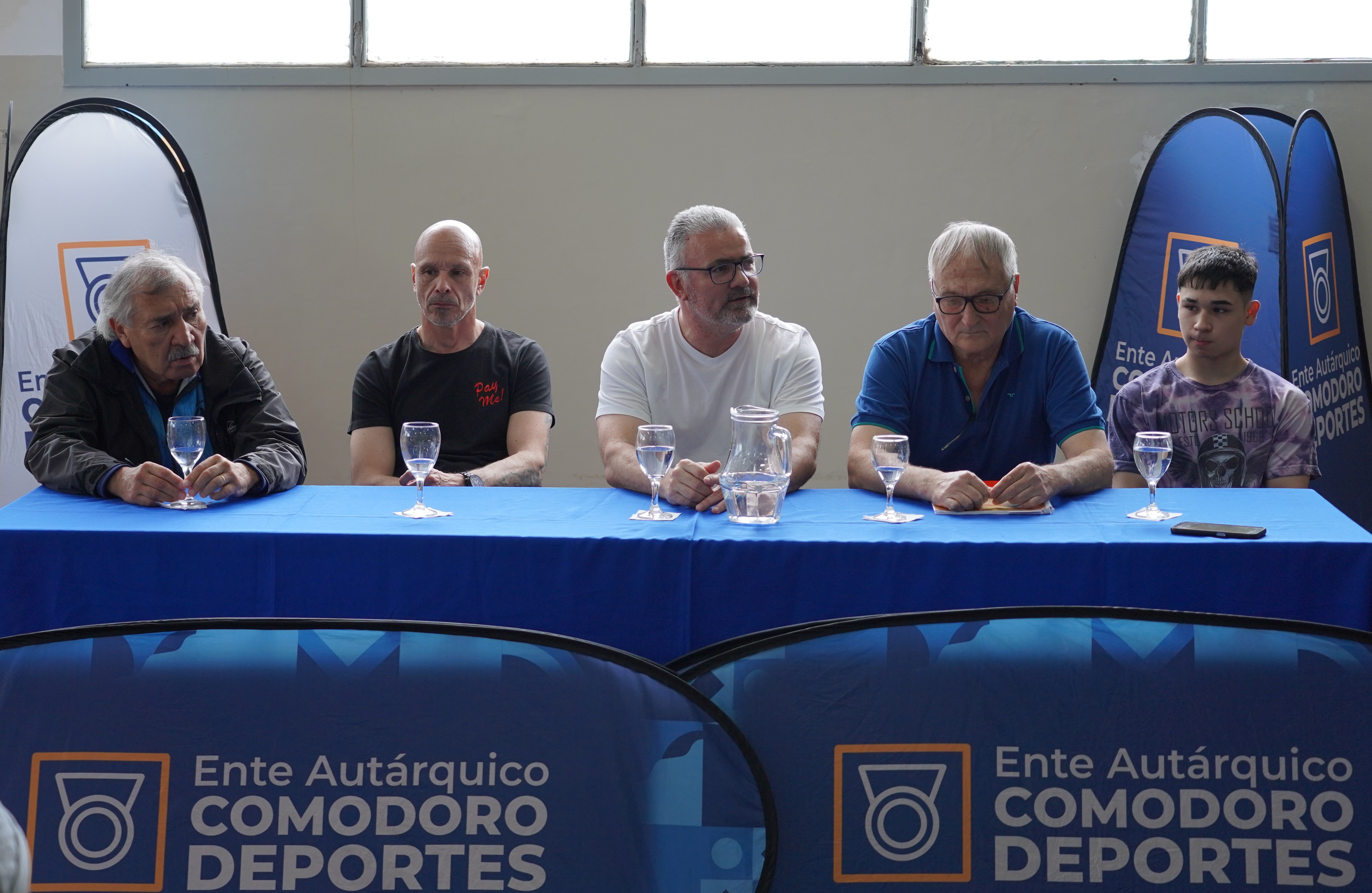 El acto de presentación de la velada de boxeo amateur “Los chicos crecen” estuvo encabezada por el presidente de Comodoro Deportes, profesor Hernán Martínez, junto al promotor Vicente “Vasco” Arisnabarreta (Piñas del Sur Producciones), el joven pugilista Ciro Barrientos y su técnico Juan Alvarado (Team Alvarado).