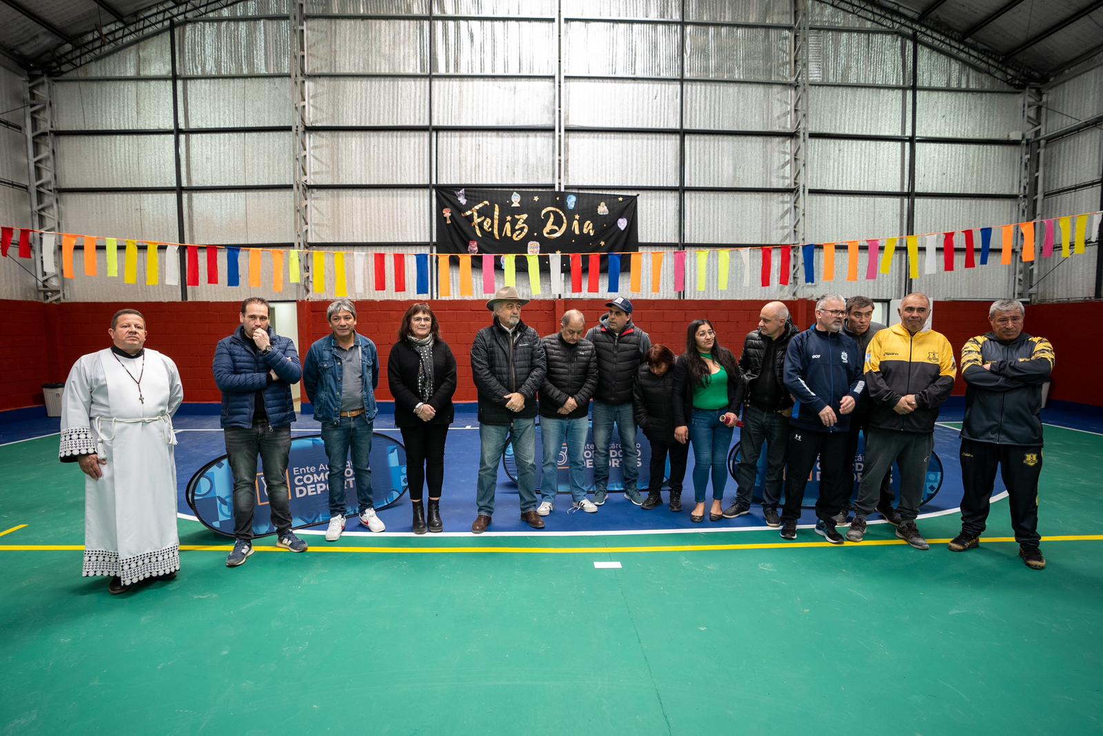 El intendente Othar Macharashvili acompañado del viceintendente Maximiliano Sampaoli y el presidente del Ente Comodoro Deportes, Hernán Martínez,inauguró la obra del primer playón techado en el barrio La Floresta, que se utilizará como SUM para realizar diversas actividades sociales y deportivas._
