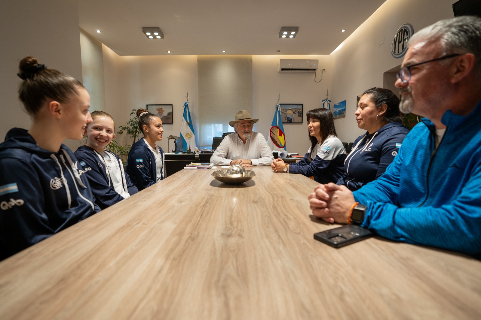 El encuentro tuvo lugar este martes por la tarde, con la presencia del intendente Othar Macharashvili; el titular del Ente Comodoro Deportes, Hernán Martínez; y las entrenadoras Vanina Rapiman, del Gimnasio Municipal N° 4, y Marcela Ramos, de la Escuela de Aeróbica Deportiva MR.
