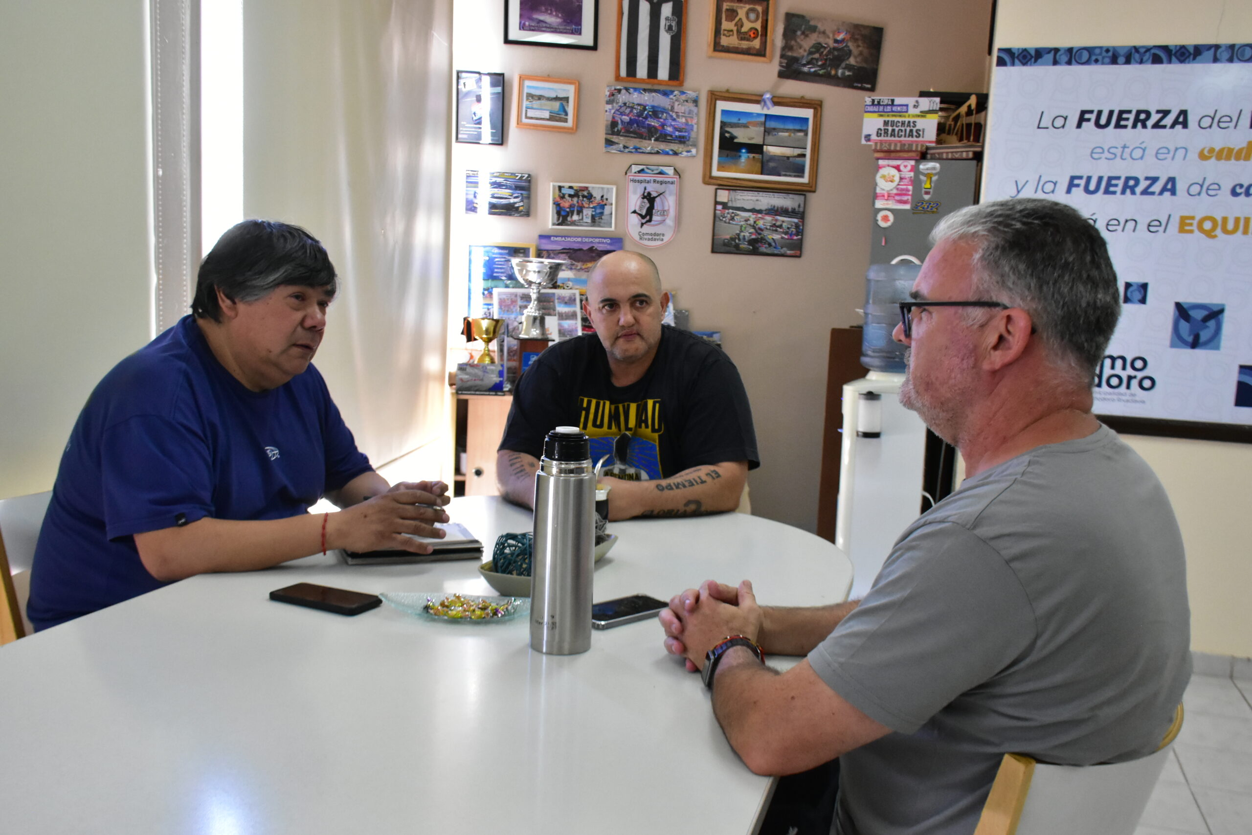Fernando Ávila y Juan Carlos Lagoa, integrantes de Picadas Comodoro, mantuvieron un encuentro con el presidente de Comodoro Deportes, Hernán Martínez, para afinar detalles de lo que será la primera competencia del año.
