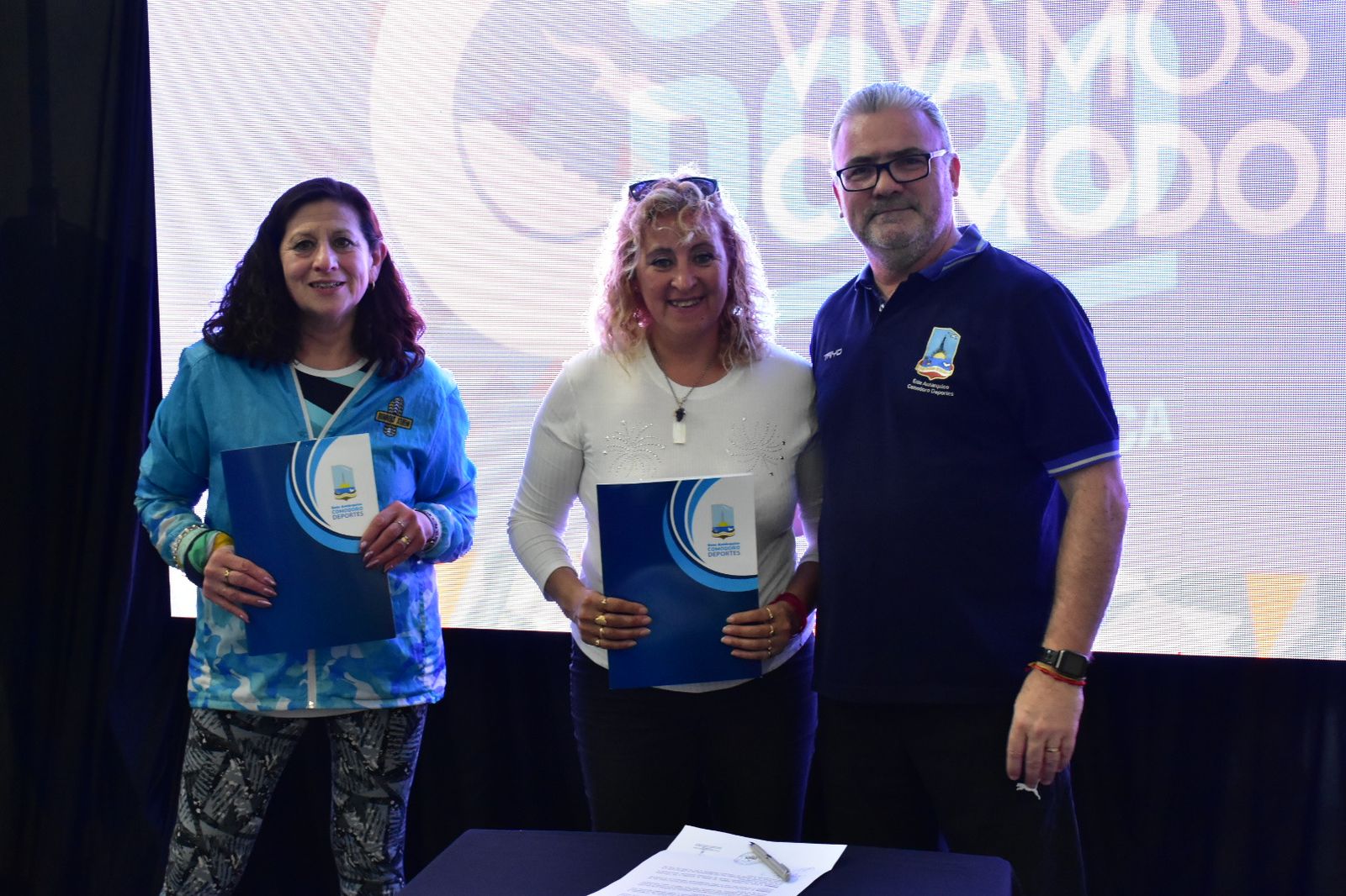 En la previa de la conferencia, se firmó un acuerdo de ayuda económica por parte del Estado Municipal con las agrupaciones y grupos de atletismo de Comodoro y Rada Tilly para afrontar la carrera.
