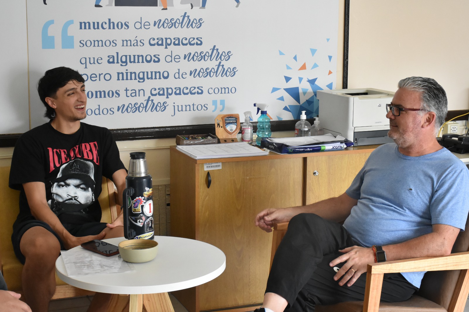 El jugador comodorense surgido en la Escuela Municipal Km5, en su estadía en la ciudad, se reunió con Hernán Martínez, presidente de Comodoro Deportes.